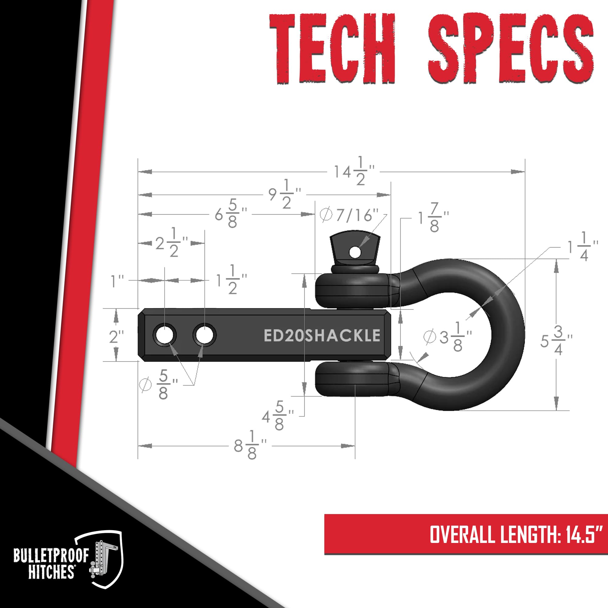Bulletproof Hitches ED20SHACKLE 2.0" Extreme Duty Receiver Shackle 36,000 lb