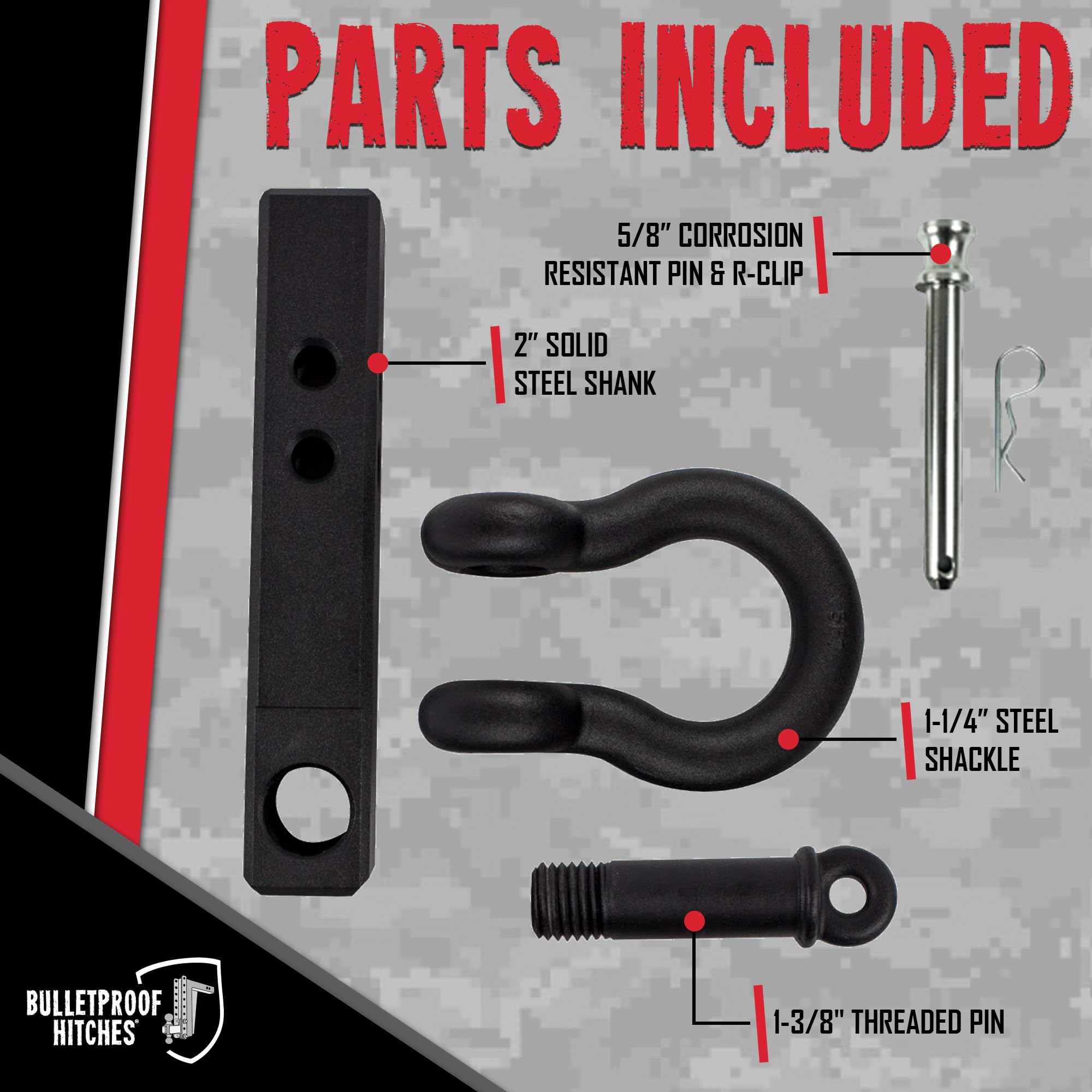 • Solid 2.0-inch steel shank fits standard 2-inch receiver hitches