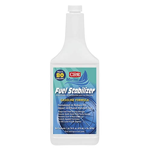 CRC Industries 1003927 Marine Gasoline Fuel Stabilizer is a high-potency, concentrated formula designed to protect marine engines and fuel systems during storage. This 8 fl. oz. bottle treats up to 80 gallons of gasoline, preventing fuel degradation, gum and varnish formation, and corrosion in fuel tanks and lines.