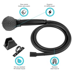 The Dura Faucet DFSA400KMB is a complete handheld shower wand kit designed for RV and marine applications. This versatile system features a sleek matte black finish that adds a modern touch to any bath or shower space.