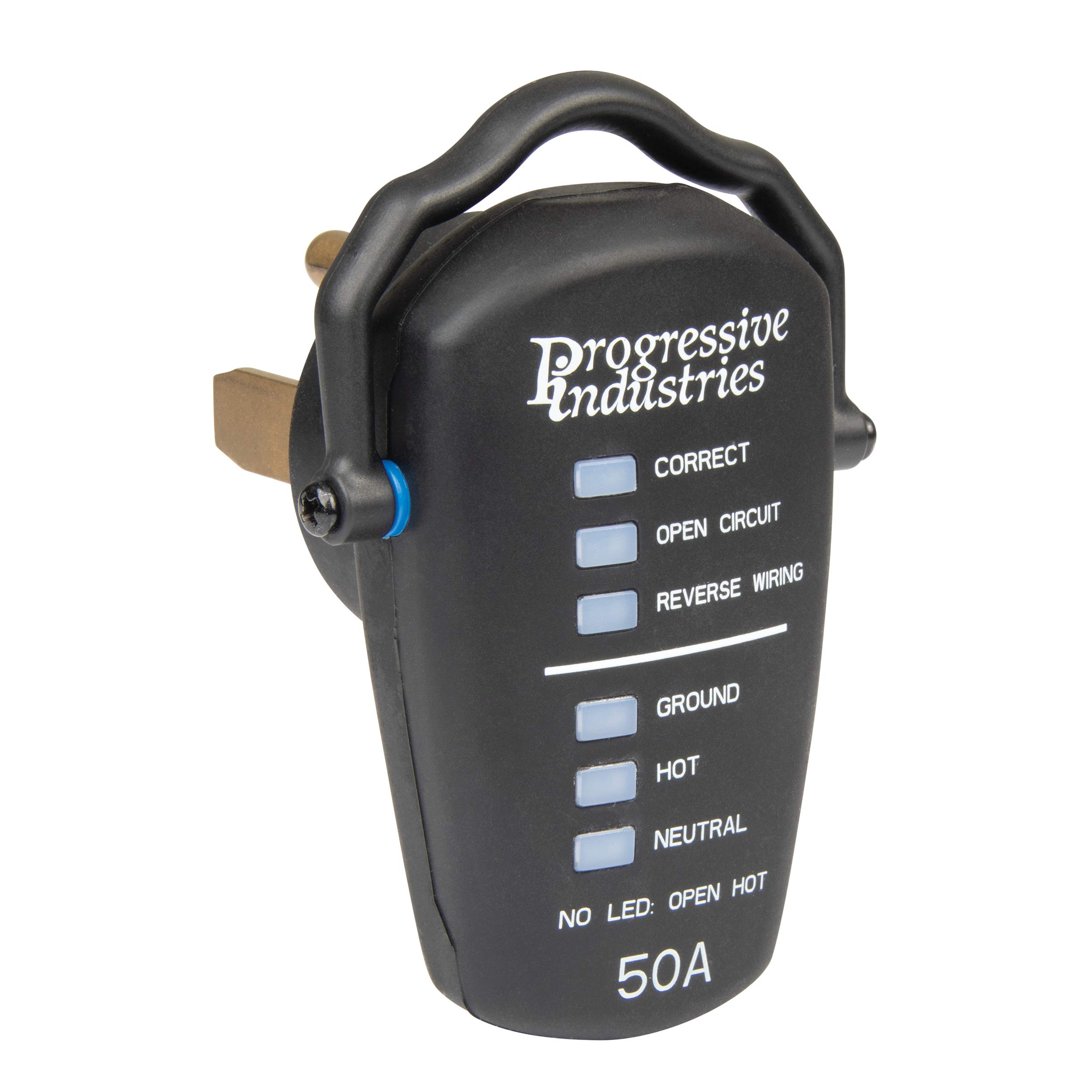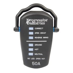 The Progressive Industries RRT-50 is a 50-amp RV receptacle tester designed to quickly identify electrical wiring faults at campground pedestals before you plug in your RV. This essential safety tool helps protect your RV's electrical system from potentially damaging wiring errors.