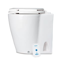 The Albin Design Marine Toilet is a compact electric marine toilet system featuring an integrated 12V macerator and pump that handles both waste disposal and flushing in a single operation. This space-saving design combines functionality with the refined appearance of a residential toilet.