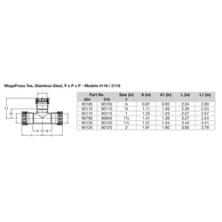The Viega MegaPress 95110 is a 3/4-inch stainless steel tee fitting designed for press connection systems in commercial and industrial piping applications. Manufactured from durable 304 stainless steel, this triple press connection fitting provides a reliable, flame-free alternative to traditional welding and threading methods.