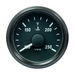 The VDO SingleViu A2C3833340030 is a precision 52mm (2-1/16 inch) water temperature gauge designed for accurate engine monitoring. This analog gauge features a clean, modern face with clear markings and a 250°F maximum temperature range, making it ideal for automotive, marine, and powersports applications.