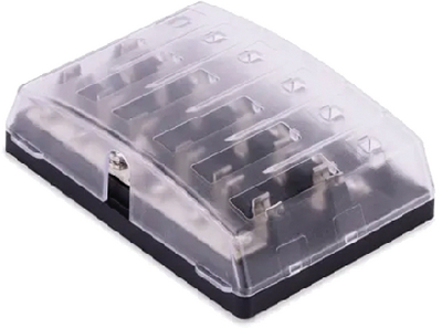 The Sierra FS40910 is a professional-grade 6-circuit fuse block designed for marine and automotive electrical systems. This 409 Series fuse block features a common source configuration with a protective transparent cover, making it ideal for organizing and protecting multiple electrical circuits in boats, RVs, and vehicles.