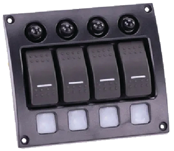 The Sierra SP21000 is a premium weather-resistant breaker panel designed for marine and outdoor applications. This 4-gang panel features a curved base design that provides a modern, stylish appearance while delivering professional-grade electrical control for your vessel or outdoor installation.