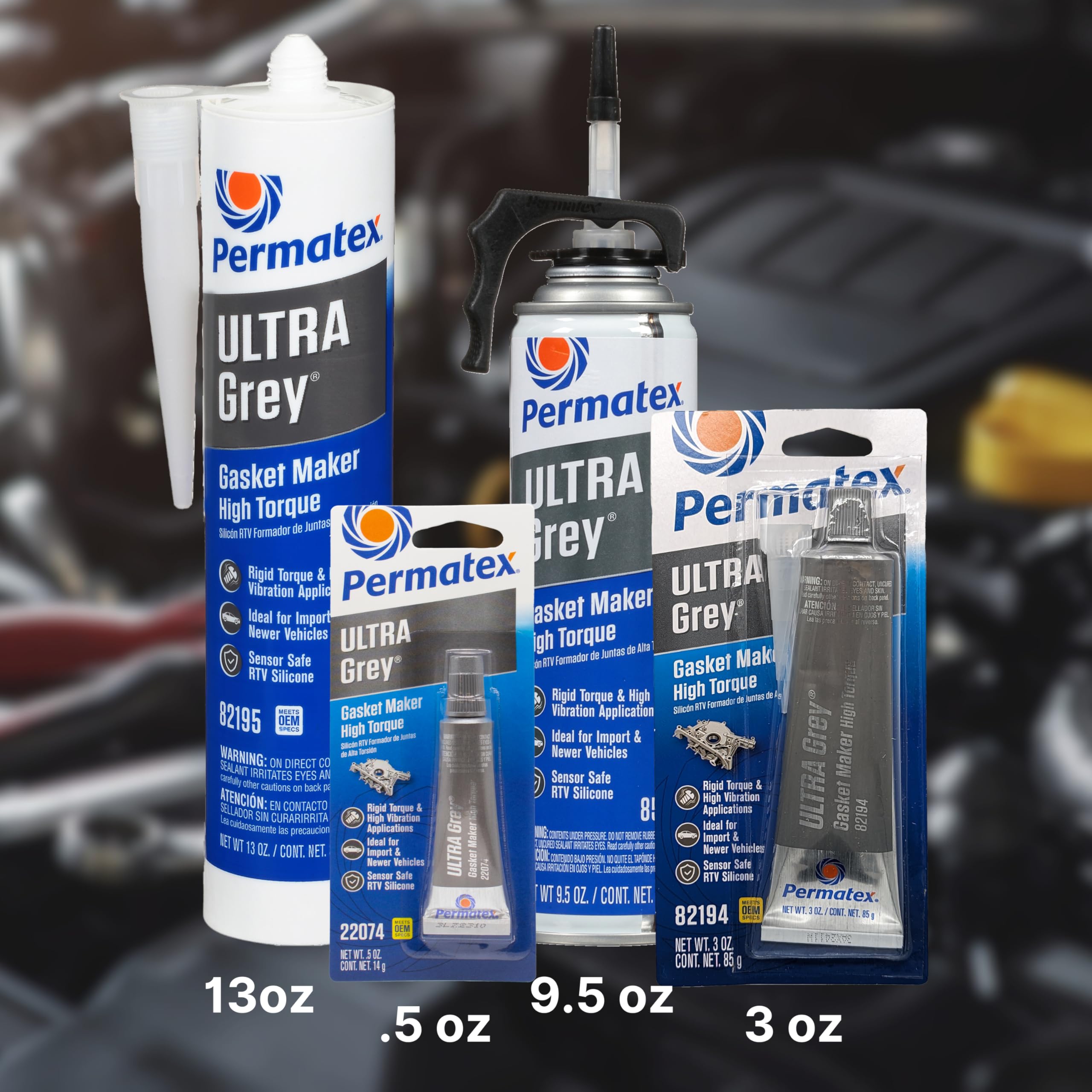 Permatex 82194 Ultra Grey Rigid High-Torque RTV Silicone Gasket Maker is an OEM-specified premium gasket sealant engineered specifically for high-torque and high-vibration applications common in import engines. This professional-grade RTV exceeds manufacturers' performance requirements, providing maximum vibration resistance and guaranteed leak-proof sealing.