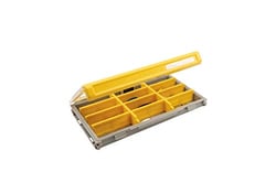 The PLASE366 includes 38 interlocking dividers that can be arranged in virtually endless configurations: 5 four-unit dividers, 6 three-unit dividers, 9 two-unit dividers, and 18 single-unit dividers. This flexibility lets you store everything from large crankbaits and soft plastics to small hooks and terminal tackle in one organized box. Create custom-sized compartments that match your exact needs, whether you're fishing for bass, crappie, catfish, or saltwater species.