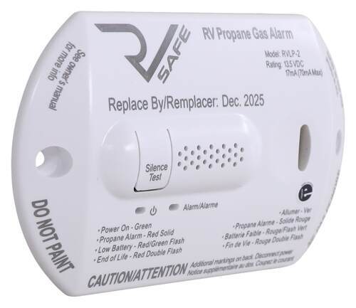 The RV Safe RVLP2W propane gas detector provides essential safety protection for your recreational vehicle by monitoring for dangerous propane gas leaks. This ETL-certified detector is designed specifically for RV applications and assembled in the USA, featuring a 2-wire installation that helps conserve battery power.