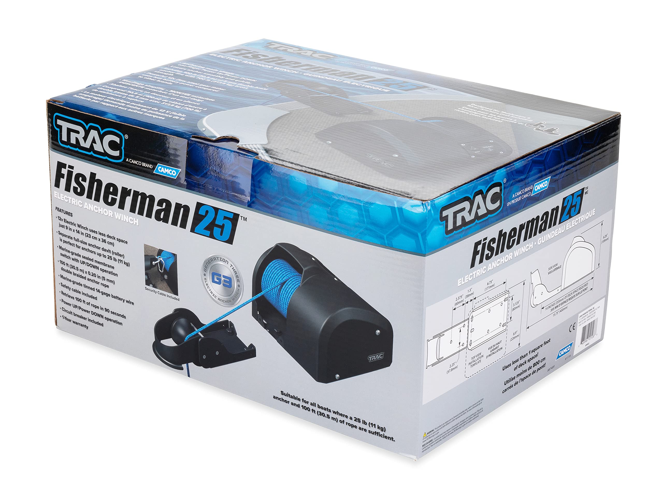 The Trac Outdoor T10108G3 Fisherman 25 Electric Anchor Winch delivers reliable power for raising and lowering anchors on boats up to 20 feet. This third-generation winch features an anti-reverse internal clutch that prevents free-spooling, ensuring your anchor stays secure once deployed.