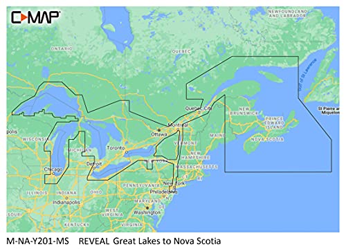 The C-MAP M-NA-Y201-MS REVEAL Coastal Chart provides comprehensive coverage from the Great Lakes to Nova Scotia, combining advanced cartography with detailed bathymetric data for superior navigation and fishing. This premium digital chart integrates traditional vector charts with cutting-edge visualization features including shaded relief, satellite imagery, and dynamic raster chart presentation.