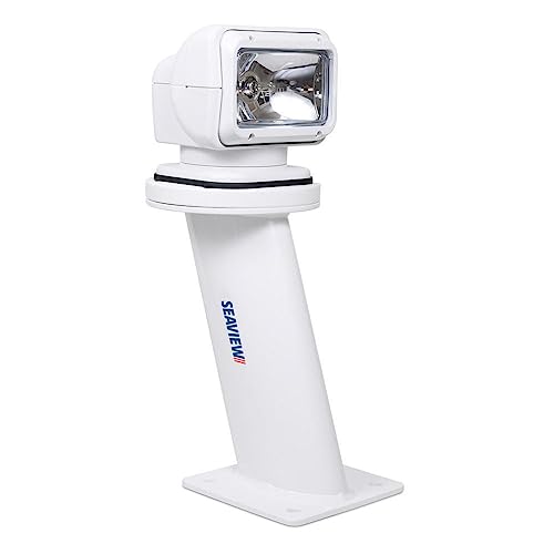 The Seaview PMA12FSL7 is a 12-inch tall aft leaning mount specifically designed for mounting searchlights and thermal cameras in space-constrained marine installations. This robust mounting solution features a compact 7" x 7" base plate and powder-coated brilliant white finish that delivers both aesthetic appeal and long-lasting durability in harsh marine environments.