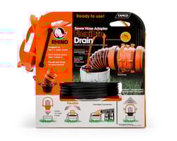 What's Included: Pre-assembled Rhino Extreme hose with swivel bayonet fitting, 3-in-1 flexible seal adapter, and integrated pull handle. This complete adapter system connects directly between your RV's sewer hose and the dump station inlet, providing a flexible, secure connection that adapts to any campground configuration.