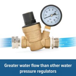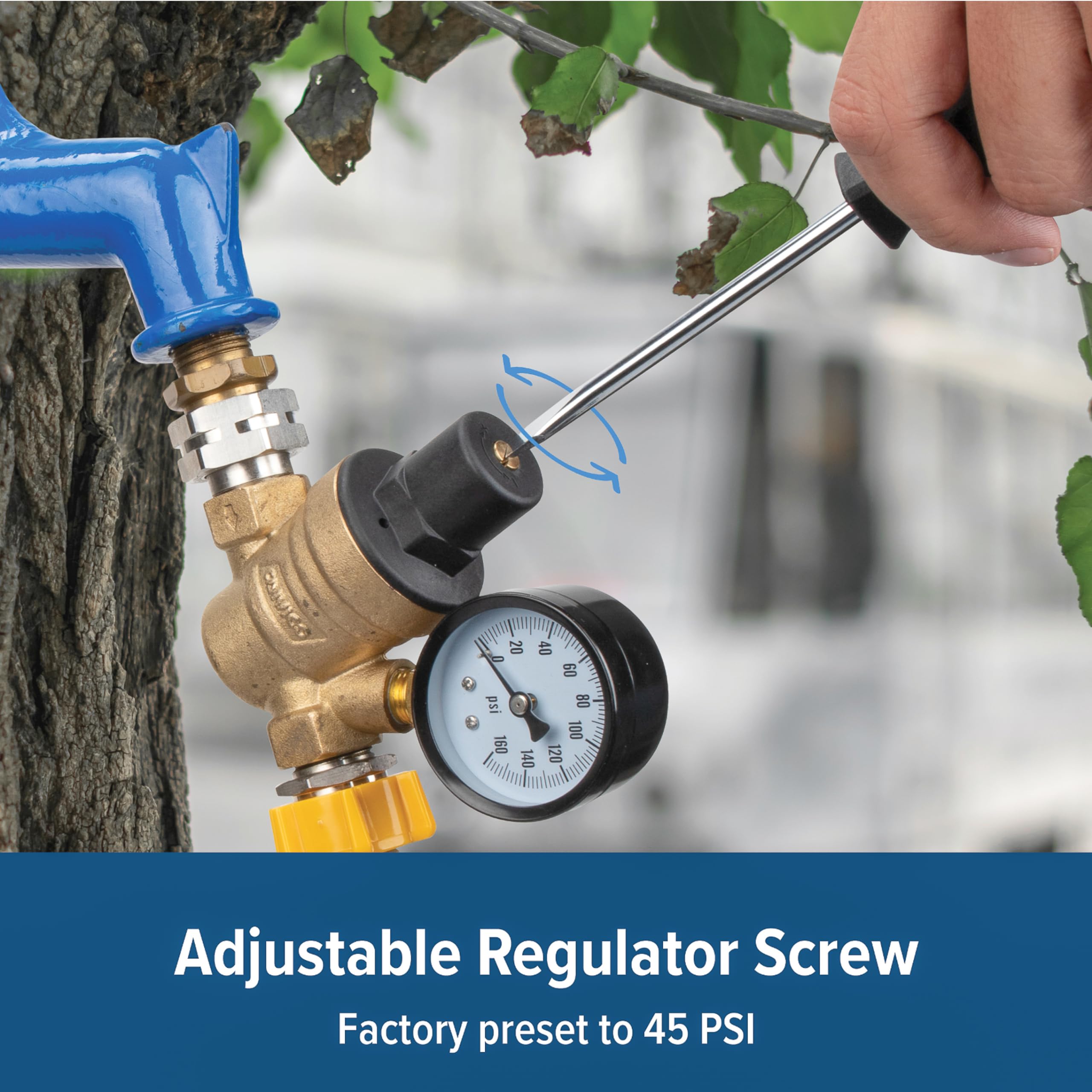 Simply thread this regulator between your water source and RV water hose to maintain consistent, safe water pressure. The adjustable design allows you to fine-tune pressure settings based on your specific needs and campground water pressure conditions. Ideal for motorhomes, travel trailers, fifth wheels, and campers.