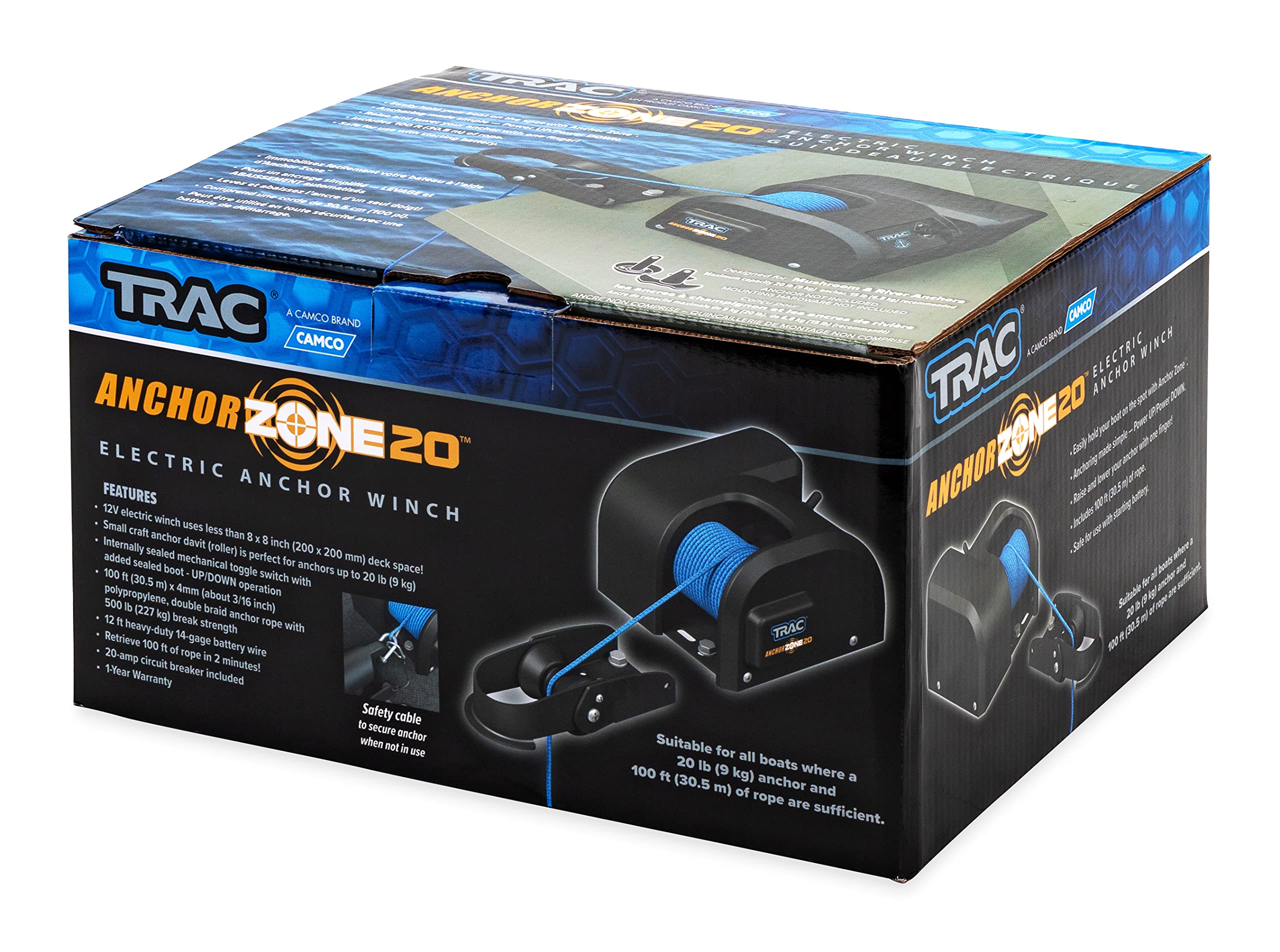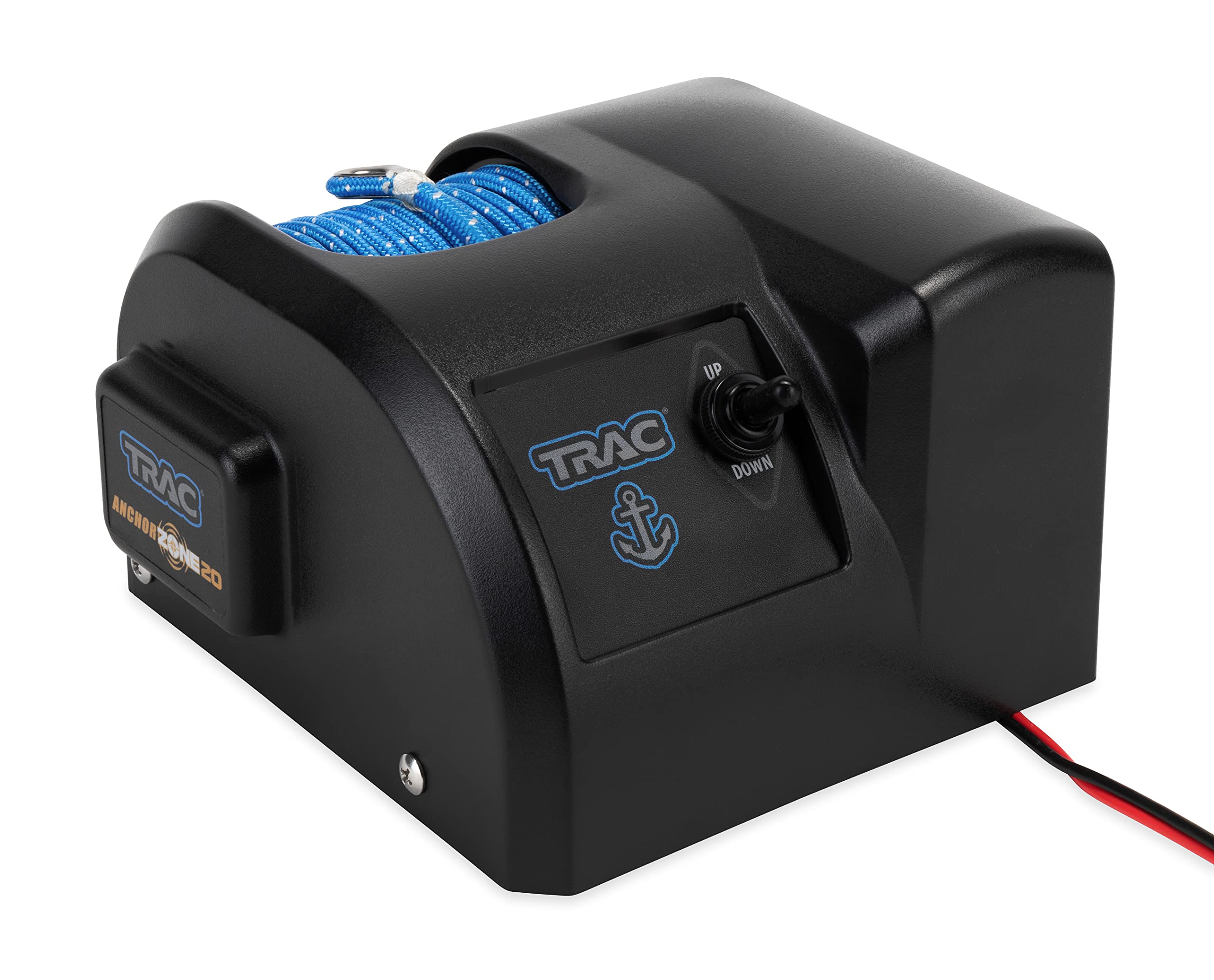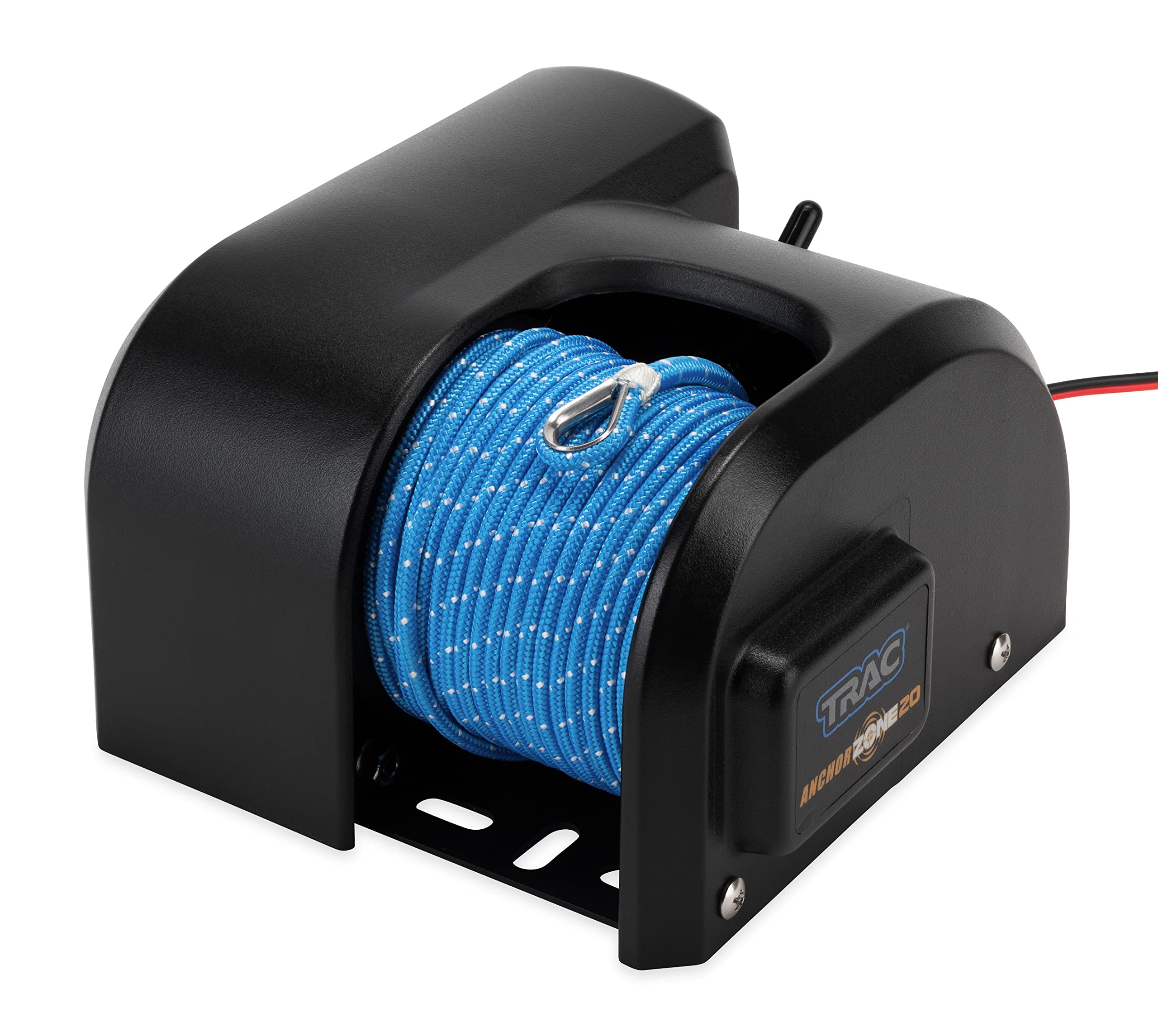 The Camco TRAC Outdoors AnchorZone 20 Electric Anchor Winch provides automatic anchor deployment and retrieval with the push of a button, making it easy to raise and lower mushroom river anchors without manual effort. This winch features a high-efficiency, 12-volt DC, all-steel gear motor that uses less battery power than other brands. It has a maximum anchor capacity of 20 lb. (15 lb. recommended) and provides simple, smooth operation with excellent holding power.