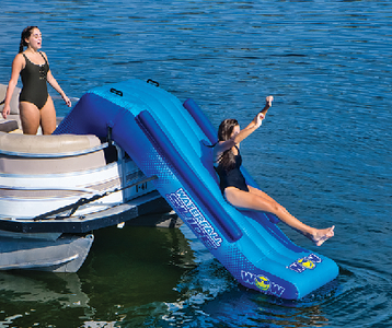 The Wow Sports Waterfall Slide transforms any pontoon boat into an instant water playground. This 8-foot inflatable slide attaches securely to your pontoon, creating a thrilling water entry point for swimmers of all ages.