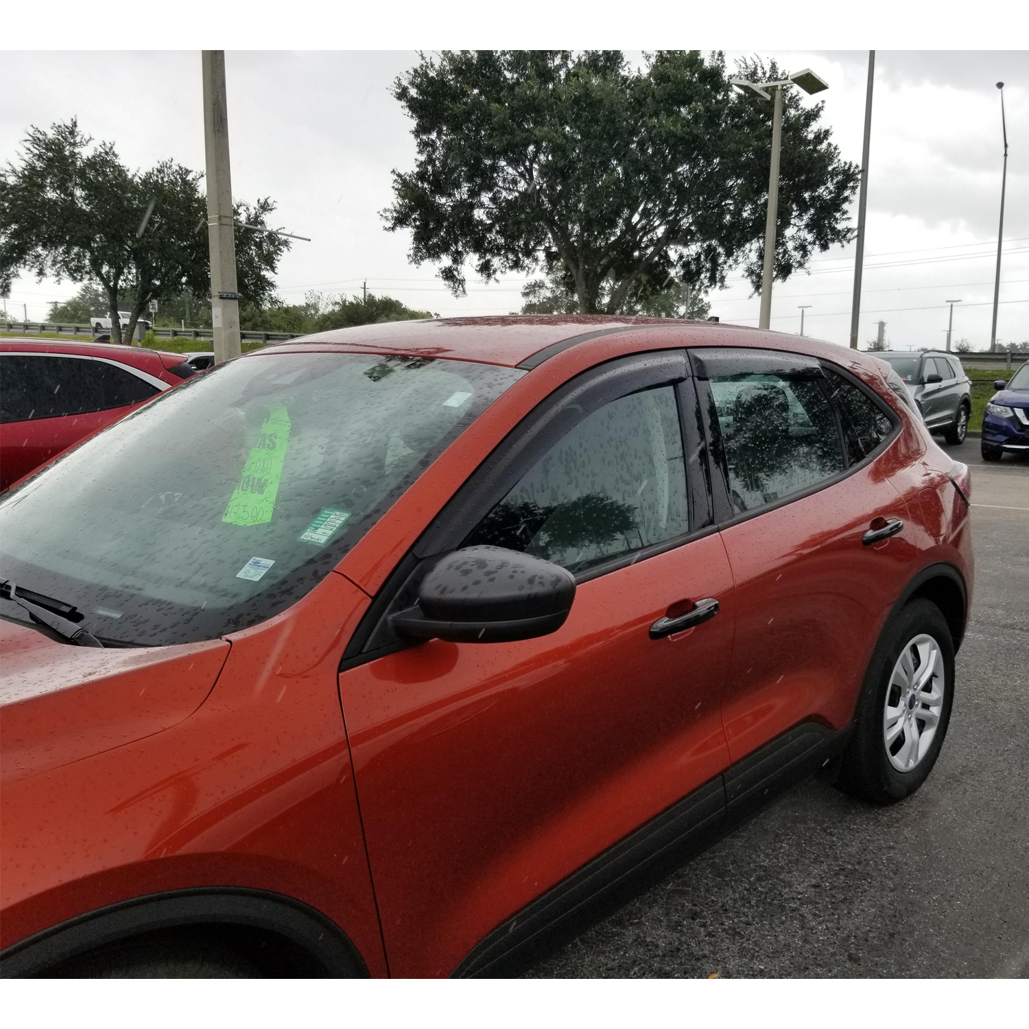 These window vent visors are designed for Ford Escape models from 2020-2021. The low-profile design complements your vehicle's styling while providing functional benefits. Installation is straightforward with the included tape-on mounting system—no drilling required.
