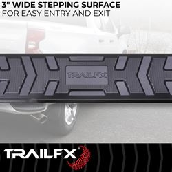 TrailFX A4 Series step bars are engineered specifically for crew cab models, providing easy access to the cabin while complementing your truck's exterior styling. The lightweight aluminum construction won't add excessive weight, while the powder-coated finish ensures years of reliable service.