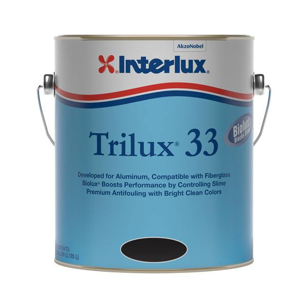 Interlux Trilux 33 is specially formulated to be a safe and effective antifouling paint for use on aluminum boats, outdrives and outboards. It's also excellent for use on fiberglass, wood, steel and primed aluminum underwater surfaces. This copper-free formula prevents galvanic corrosion, making it a top choice for metal surfaces.