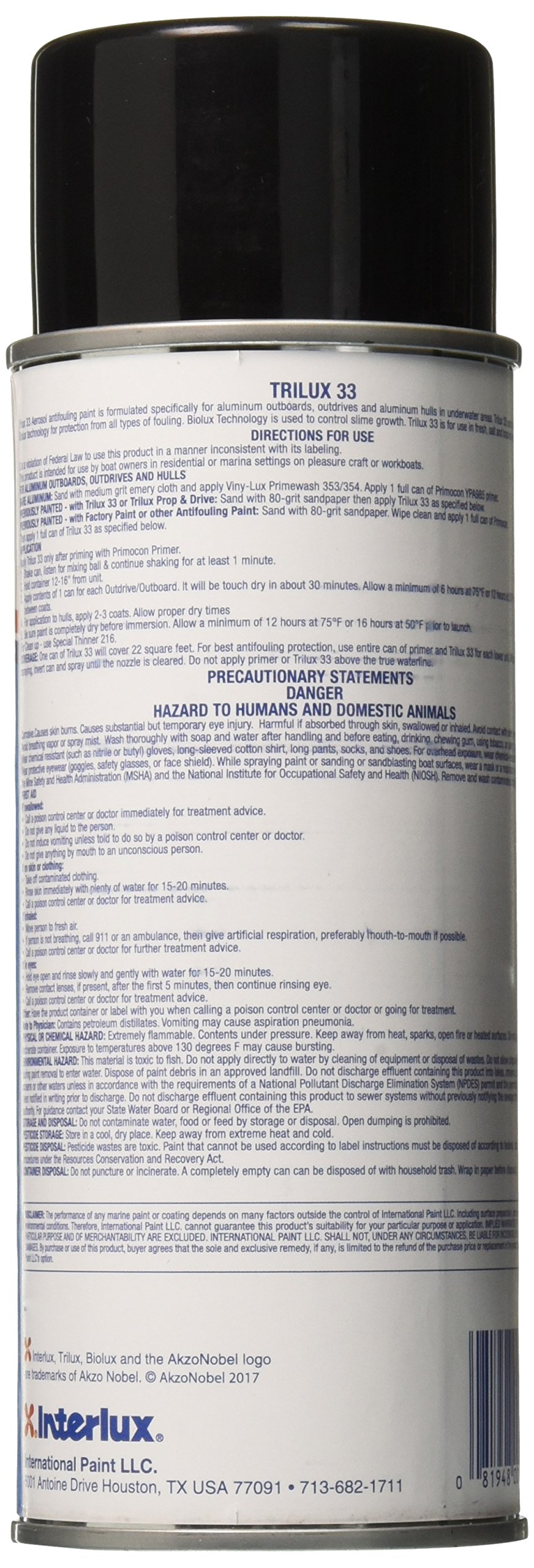 Interlux Paint 5608638 Trilux 33 Aerosol Antifouling Paint Black 12oz