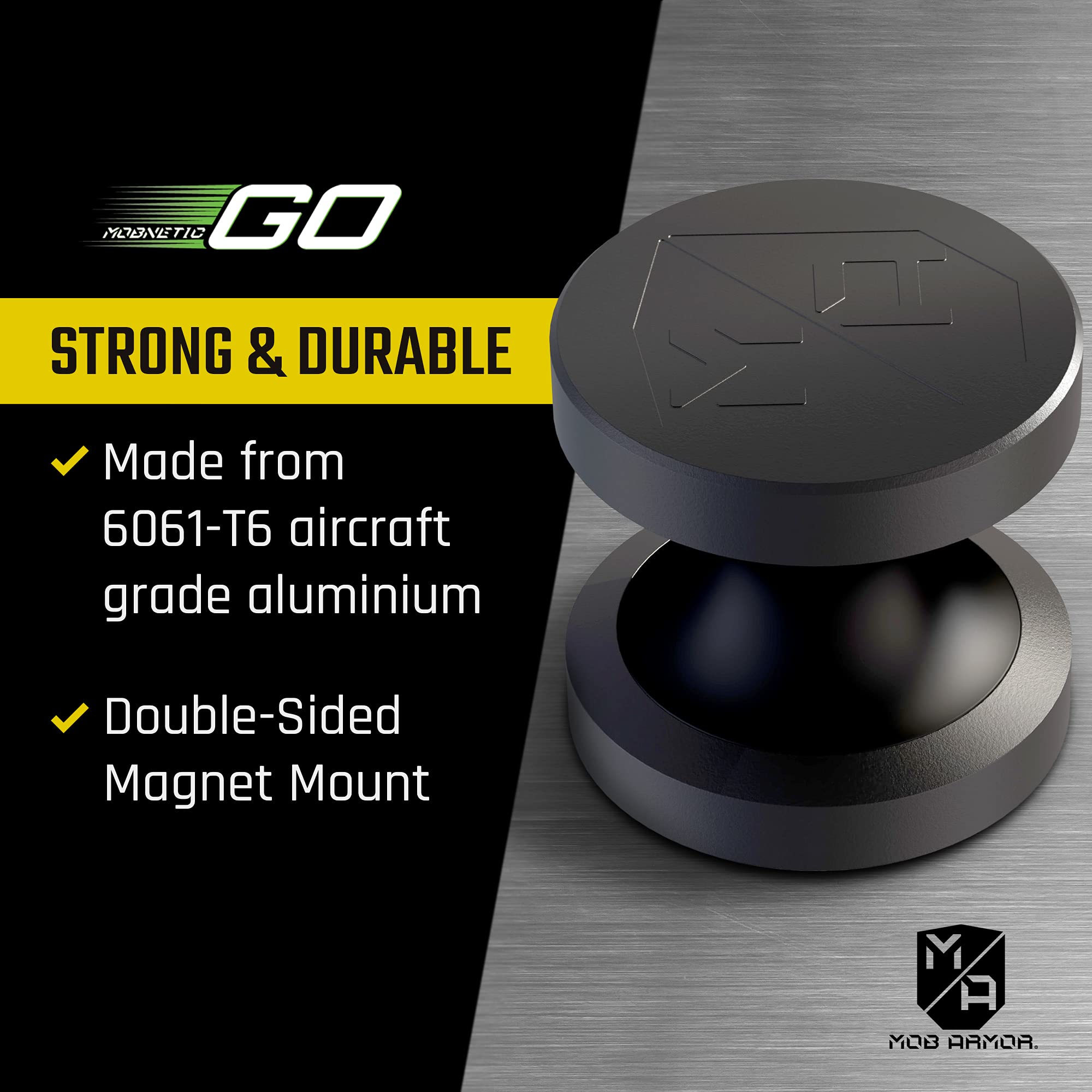 The MOB Armor Mobnetic Go is a compact magnetic car phone mount designed for secure dashboard mounting. This low-profile phone holder uses dual high-strength magnets to provide a firm grip on your smartphone while driving, keeping your device accessible and your eyes on the road.