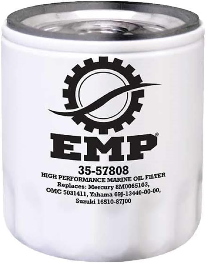 The Engineered Marine Products 35-57808 is a high-quality marine oil filter designed to deliver superior engine protection for outboard motors. This filter features enhanced filtration media that captures and holds up to 45% more contaminants than conventional filters, ensuring cleaner oil circulation and extended engine life.