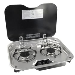 Suburban Mfg 3031AST 2-Burner Drop-In RV Cooktop with Glass Lid Stainless Steel