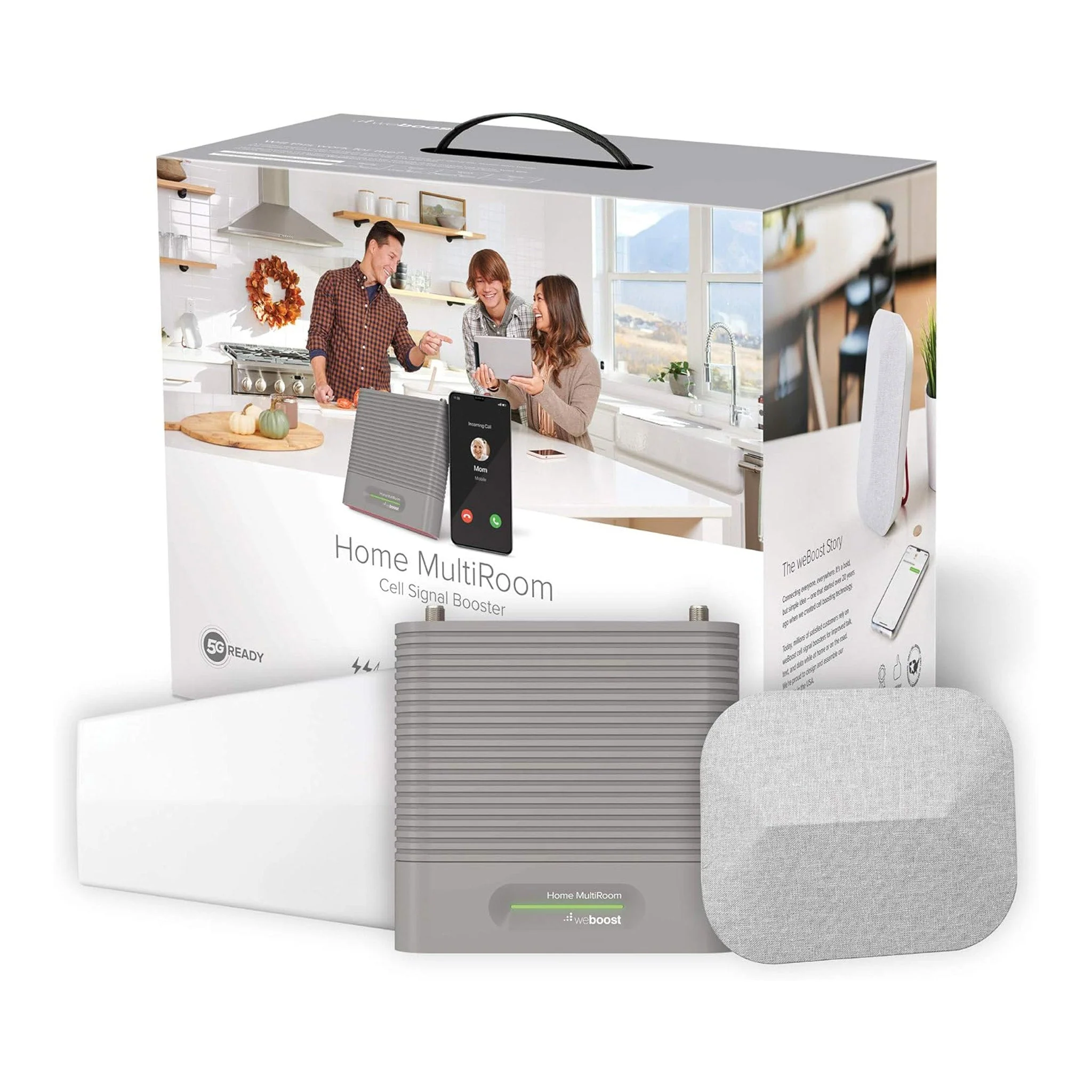 The weBoost Home MultiRoom (470144) is a powerful cell phone signal booster designed to eliminate dropped calls, dead zones, and slow data speeds in homes and offices up to 5,000 square feet. This FCC-approved kit amplifies 4G LTE and 5G signals for all major U.S. carriers including Verizon, AT&T, T-Mobile, and U.S. Cellular, ensuring reliable connectivity for every device and user in your space.