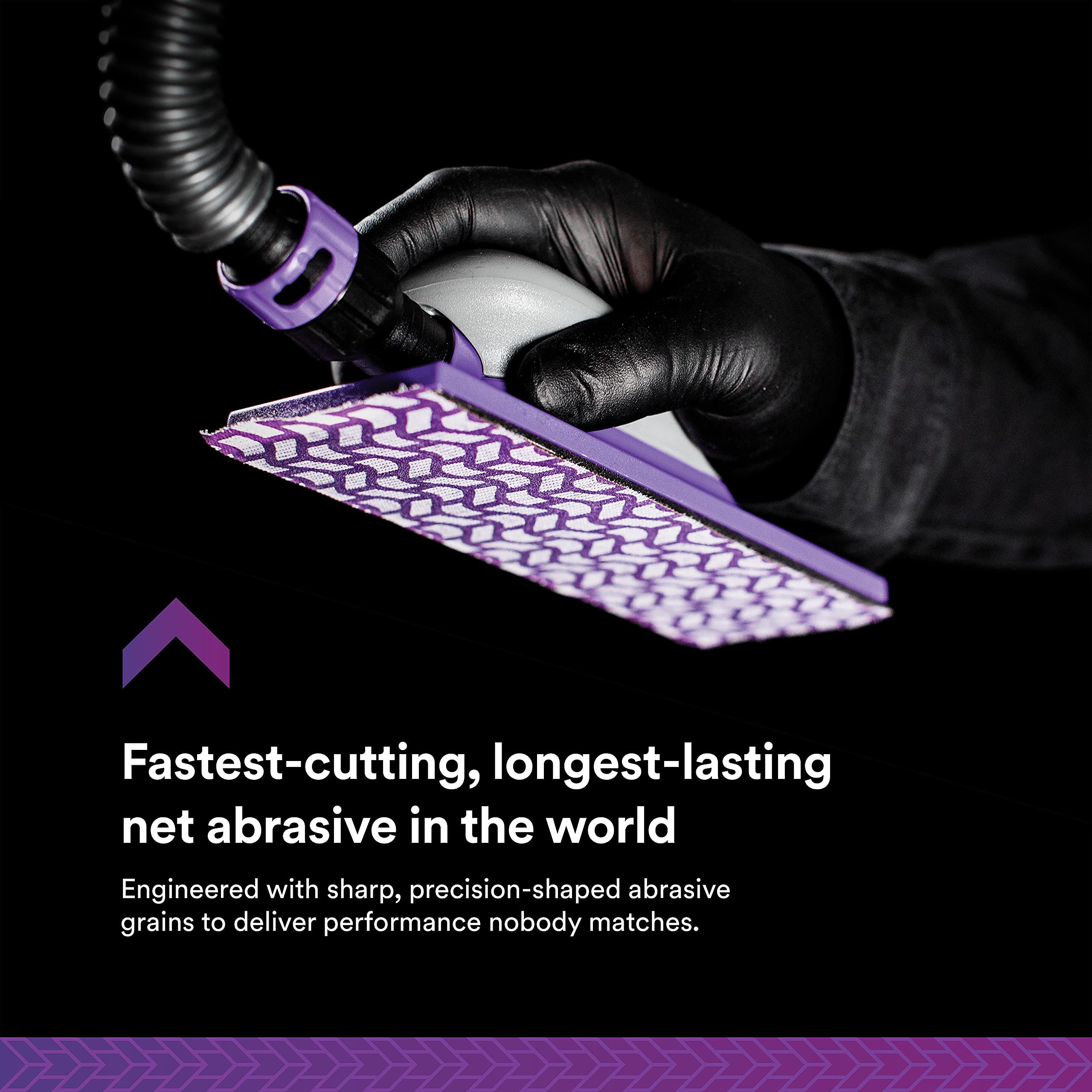 The patented 3M Cubitron II precision-shaped grain continuously fractures to form sharp points, maintaining aggressive cutting action throughout the abrasive's life. The net construction works seamlessly with dust extraction systems to virtually eliminate airborne particles and surface dust, creating a cleaner, healthier work environment. Ideal for woodworking, automotive refinishing, and general surface preparation applications.
