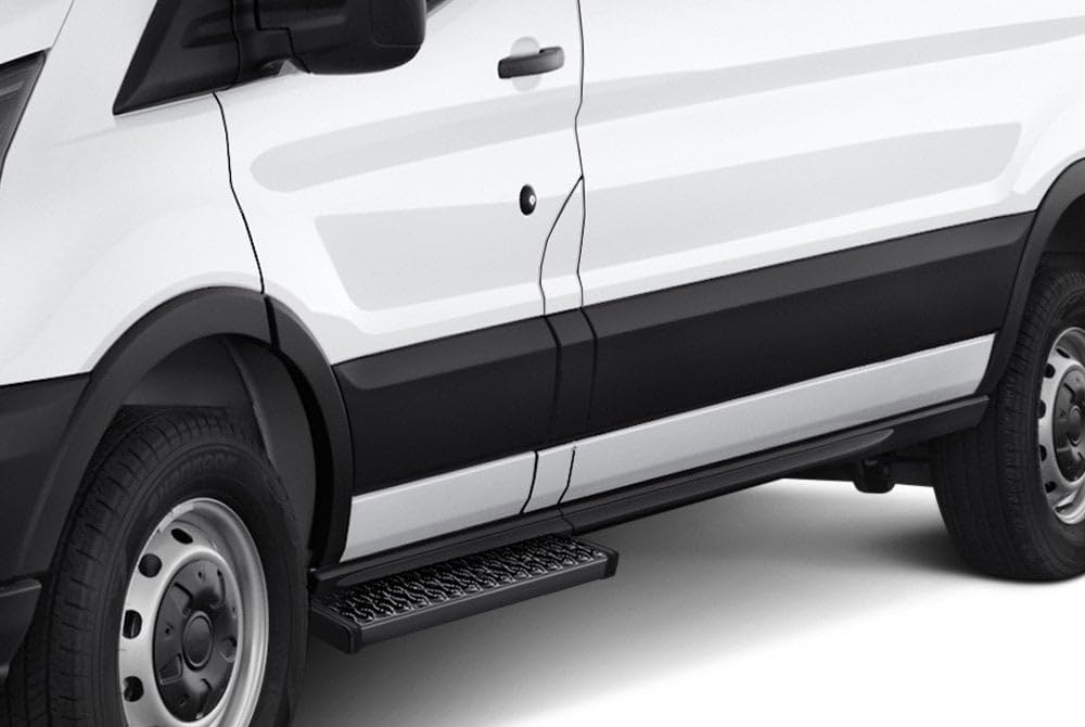 Ideal for both commercial work vans and personal vehicles, these running boards combine practical functionality with clean aesthetics. The aggressive tread pattern ensures safe entry and exit even in challenging weather conditions, while the robust construction delivers long-lasting performance in demanding environments.