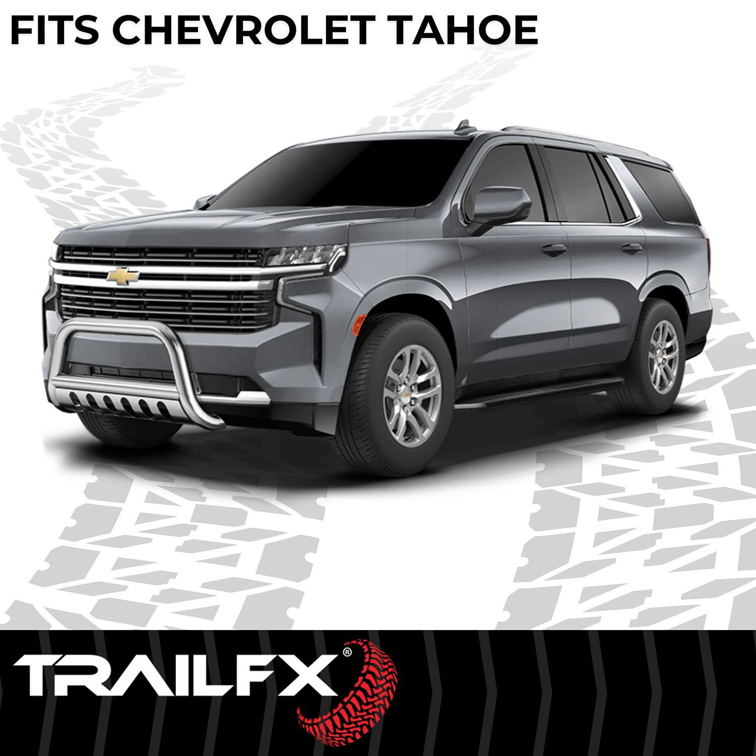 The TrailFX B0043S is a custom-engineered 3-inch bull bar specifically designed for the Chevrolet Tahoe. This rugged front-end protection system combines aggressive styling with practical functionality, featuring durable steel construction with a corrosion-resistant black powder coat finish.