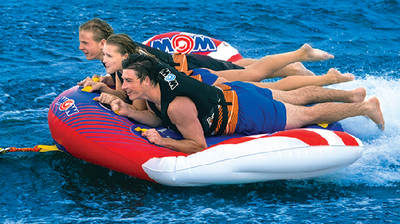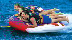 The Wow Sports Javelin 2-Person Towable delivers an exhilarating ride with its unique aerodynamic design that's built for speed and maneuverability. The innovative shape features an elevated front end that helps riders maintain their grip during sharp turns, whips, and high-speed action on the water.