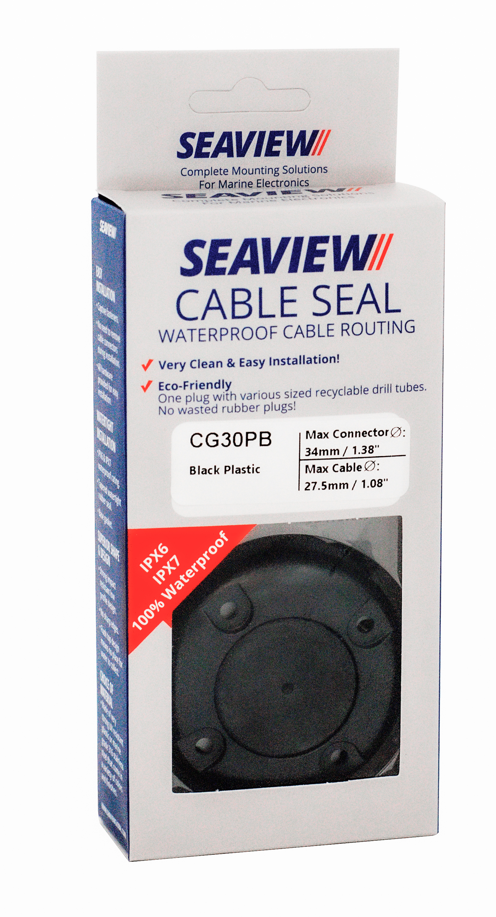 The Seaview Cable Seals (also known as CableClams, Cable Glands, or Deck Seals) provide waterproof cable routing. These are made of very strong plastic or marine grade 316 stainless steel and come in a variety of colors and finishes. Seaview cable seals fit a wide range of cables and connectors. Seaview Cable Seal options for 17mm to 34mm (0.67” to 1.38”) connectors, making it ideal for almost every installation.