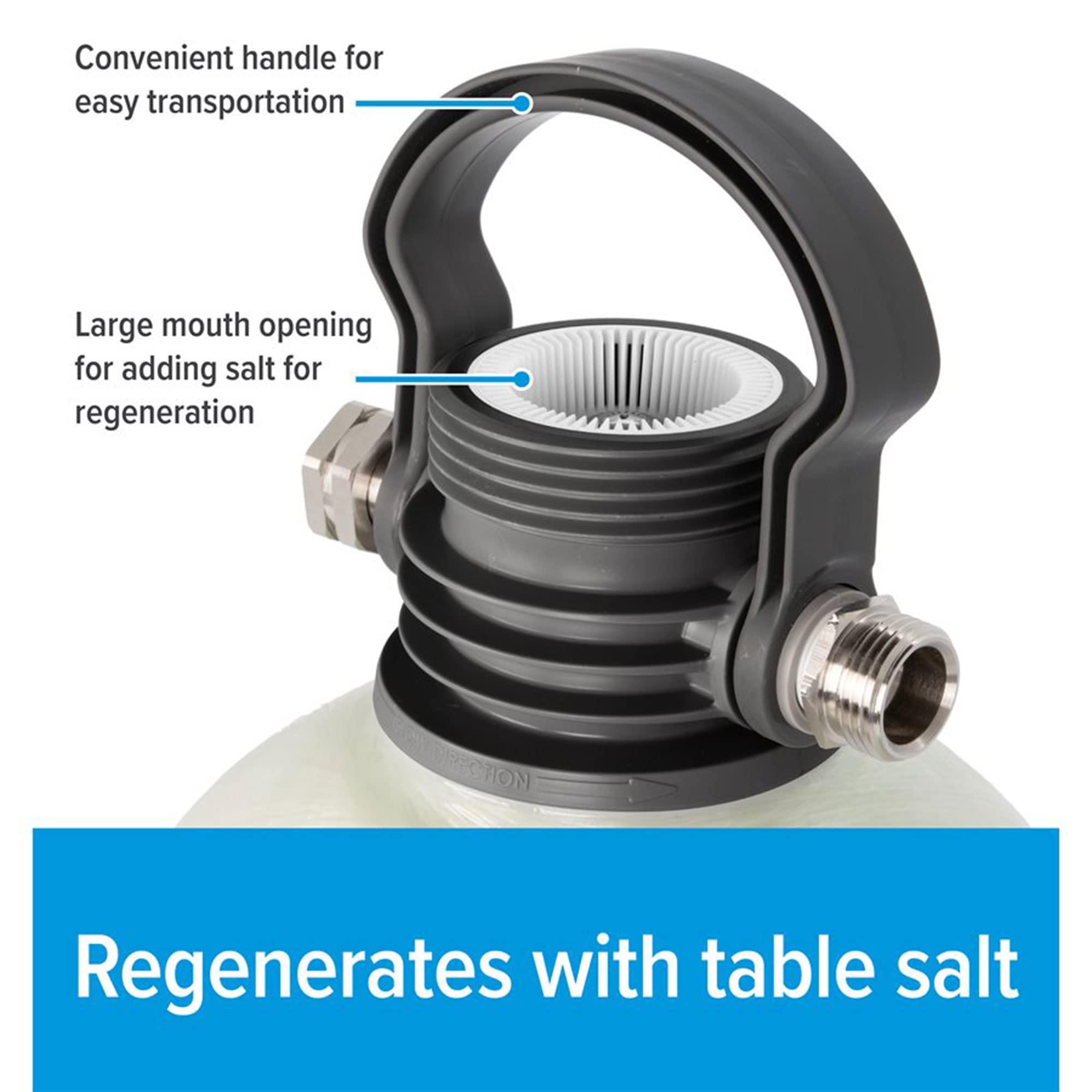 • 10,000 grain capacity ion exchange resin media effectively removes hardness-causing minerals