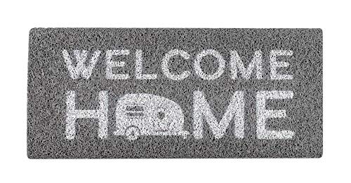 Camco's Life is Better at the Campsite RV Wrap Around Step Rug helps keep your RV clean by cutting down on tracked-in dirt and debris. Designed specifically for RV living, this functional step rug features a charming gray mat with a white "Welcome Home" retro RV print that adds personality to your camping setup.