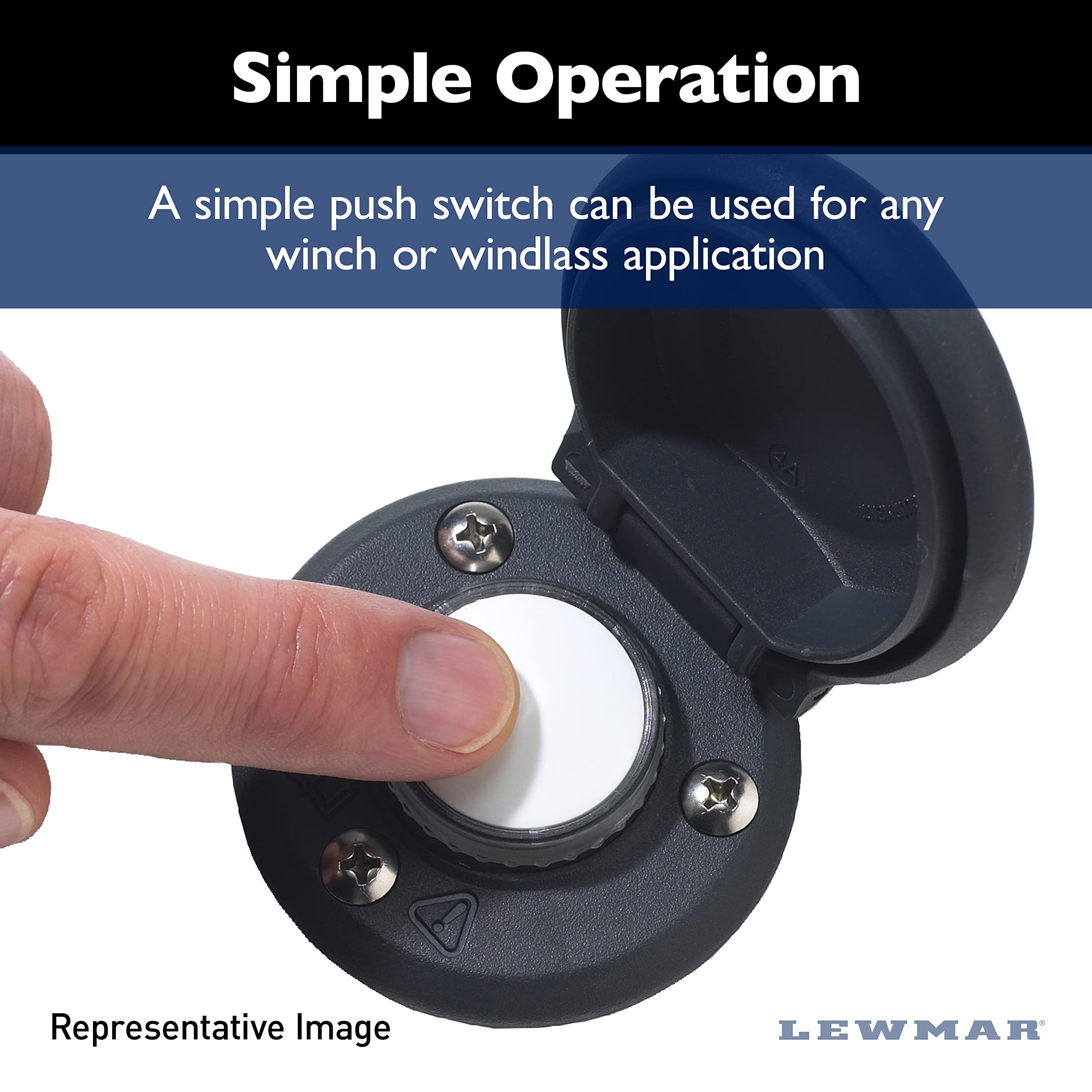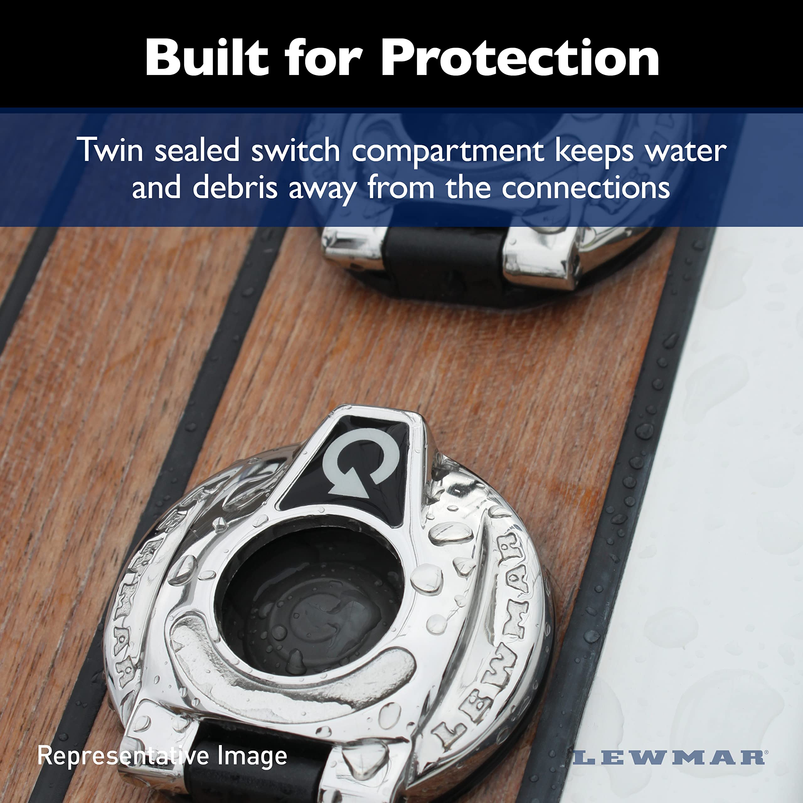 Compatible with 12/24V Lewmar electric winches and windlasses, the CHSX Deck Switch offers a protected switch that is weather-resistant, easily installed, easy to use, and prevents accidental activation.