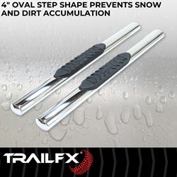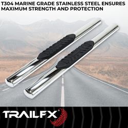 TrailFX side steps are designed to withstand the rigors of off-road use while maintaining their polished appearance. The rocker panel mounting system ensures a solid connection to your vehicle's frame without sacrificing ground clearance. Installation hardware and instructions are included for a straightforward bolt-on installation.