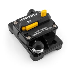 The Minn Kota MKR-19 60 Amp Circuit Breaker is designed to protect your trolling motor wiring from electrical damage and overload conditions. This manual reset breaker provides reliable overcurrent protection for 12V to 48V trolling motor systems.