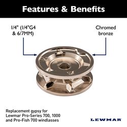 • Replacement gypsy for Lewmar Pro-Series 700, 1000, and Pro-Fish 700 windlasses