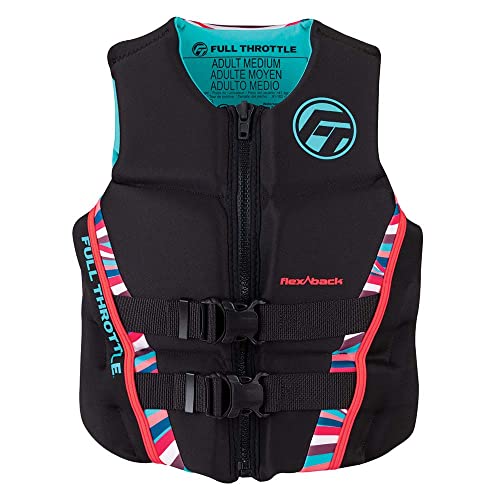 The Full Throttle Women's Rapid Dry Flex Back Life Jacket is specifically engineered for shorter waist women, delivering an optimized fit for watersports activities. This XS-sized pink life vest combines comfort, flexibility, and safety for active water recreation.