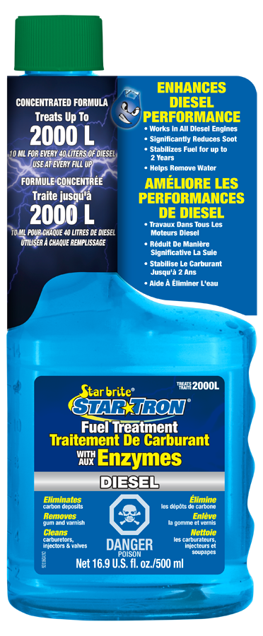 Star Tron Diesel additive is ideal for trucks, construction equipment, generators, marine diesel engines, RVs, and agricultural machinery. The concentrated formula ensures maximum value while protecting your fuel system and optimizing engine performance. This package features Canadian labeling.