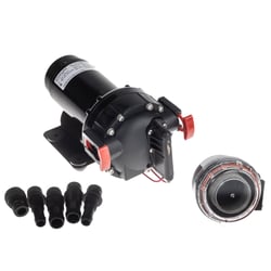 The Johnson Pumps Aqua Jet Wash Down Pump delivers professional-grade performance for marine cleaning applications. This 12-volt pump provides 3.5 gallons per minute flow rate at an industry-leading 70 PSI pressure, making quick work of deck washing, anchor cleaning, and general boat maintenance tasks.