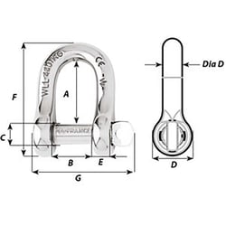 Wichard 01401 Stainless Steel Self-Locking Captive Pin D Shackle 3/16 Inch