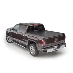 This hard folding tonneau cover can be partially opened to accommodate taller cargo while securing the rear section, or completely folded forward for full bed access. The sturdy panels and secure latching system provide peace of mind when transporting valuable equipment or keeping items protected from the elements.