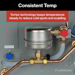 The Furrion FWH09AFA-AM is a high-performance tankless gas water heater designed specifically for RV applications, delivering unlimited hot water on demand with a flow rate of 2.4 gallons per minute. With its powerful 60,000 BTU heating capacity and innovative antifreeze protection feature, this water heater maintains consistent hot water delivery even when outside temperatures drop below 32 degrees Fahrenheit, making it ideal for year-round camping adventures.