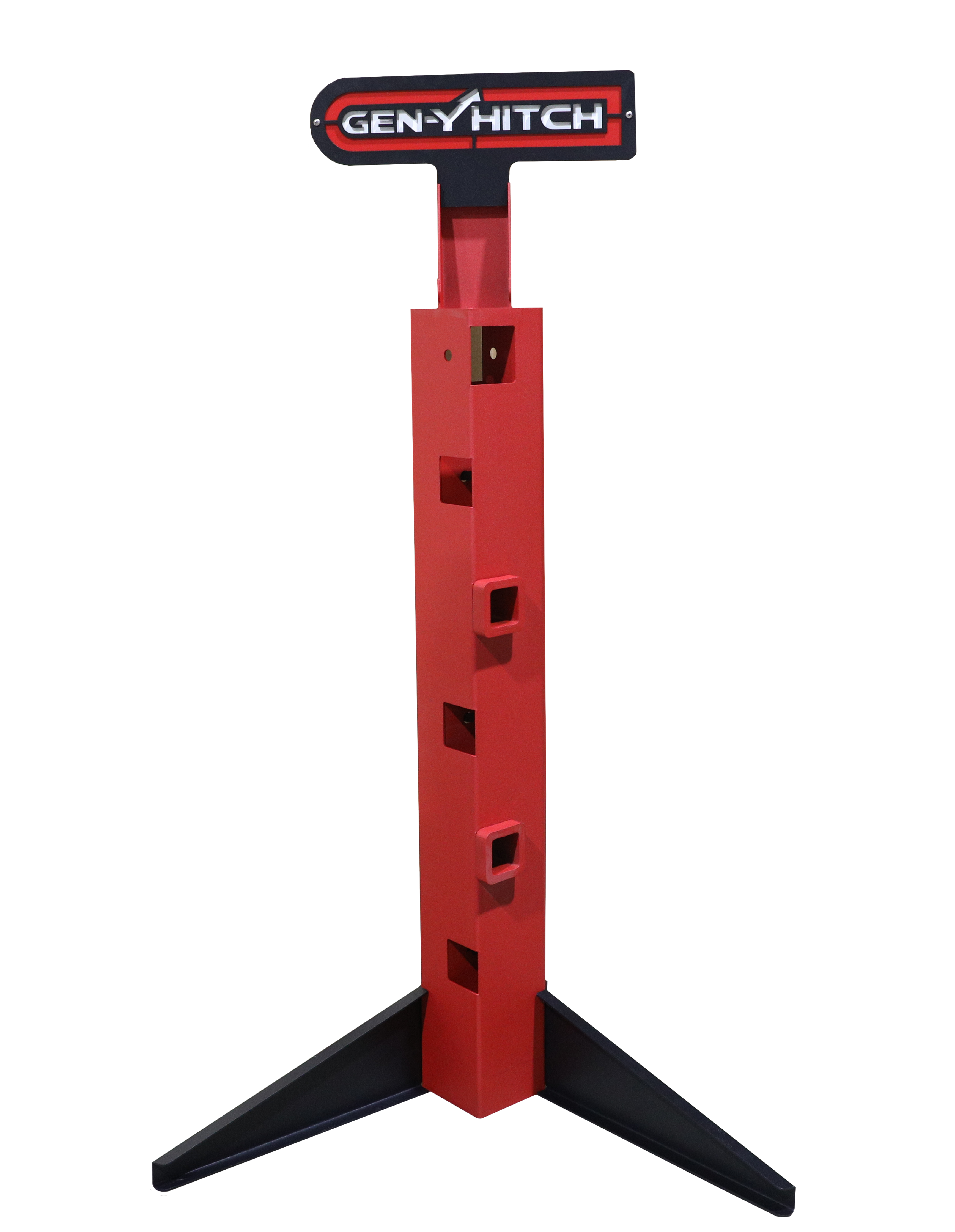 This display stand provides a clean, organized presentation of your Gen-Y Hitch products and other towing accessories. The multiple receiver sizes accommodate various shank diameters, while the included reducer sleeves allow for additional configuration options. The integrated monitor bracket enables you to pair product displays with digital content, specifications, or promotional materials.