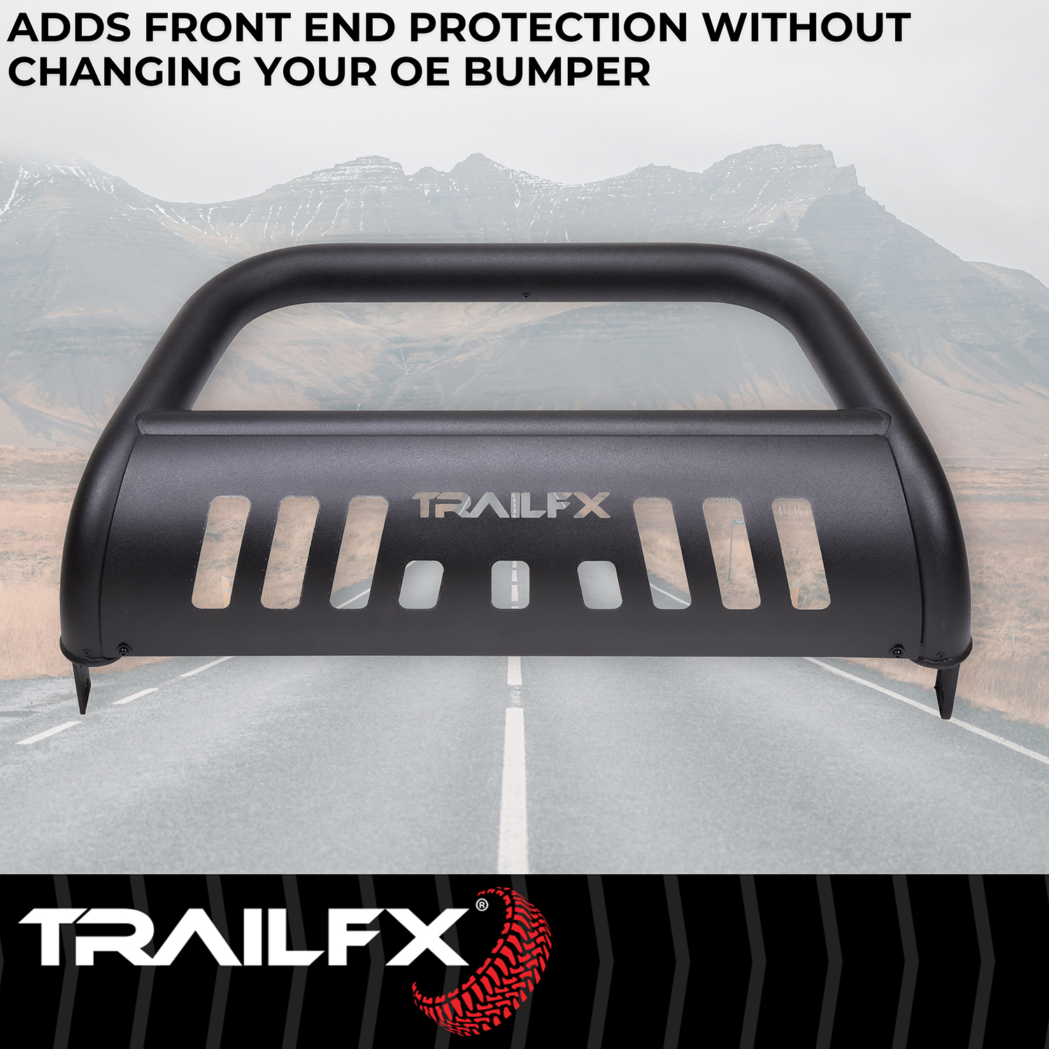 The TrailFX B0044T is a heavy-duty 3-inch diameter bull bar designed specifically for Toyota Tundra trucks. This front-end protection system combines rugged steel construction with a durable titanium black powder-coated finish that resists corrosion and provides long-lasting style.