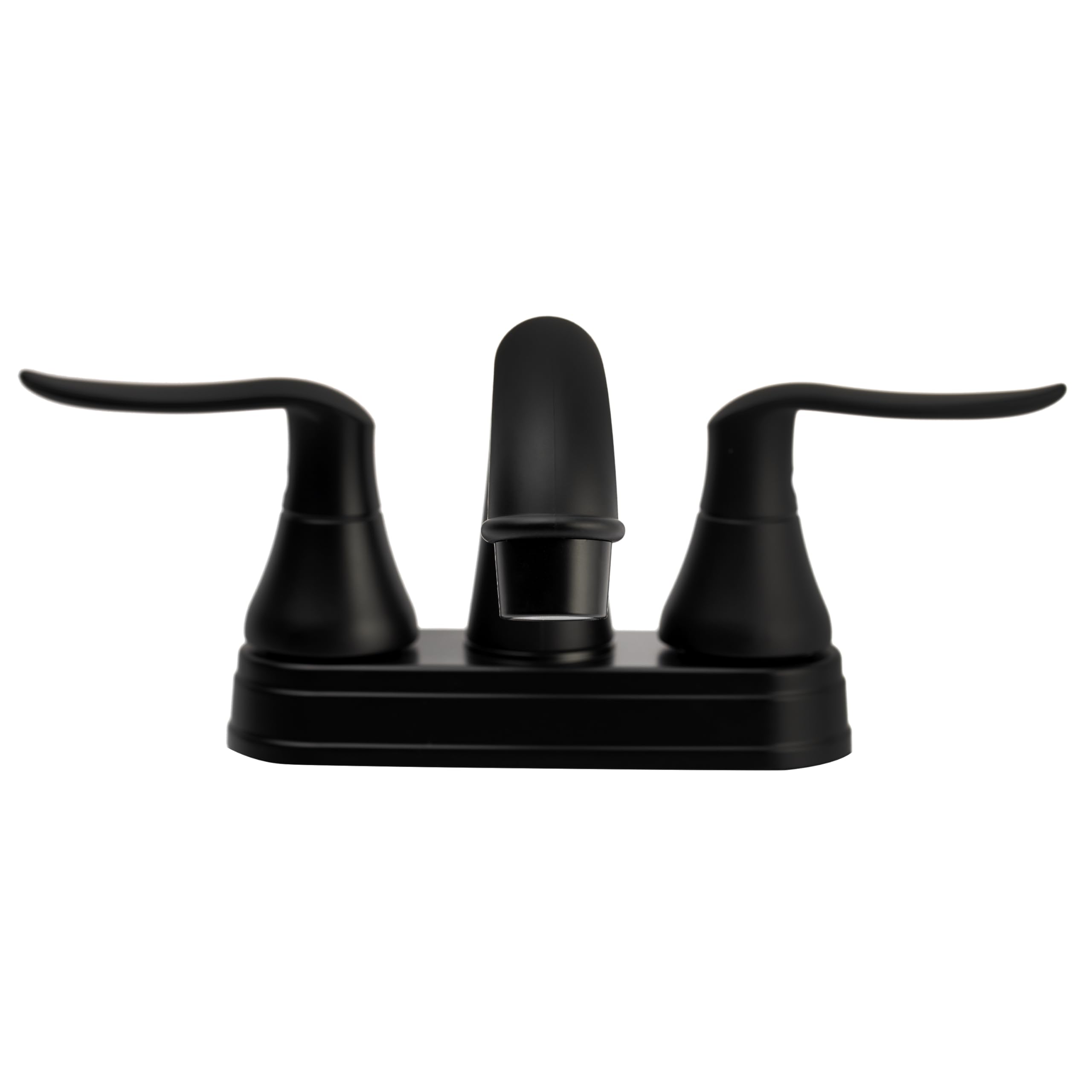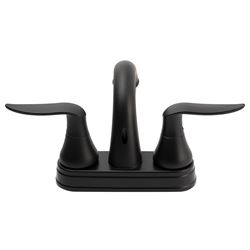 This faucet installs on standard 4-inch center configurations and does not include a pop-up drain assembly. The washerless cartridge design ensures long-lasting, leak-free performance, while the matte black finish complements contemporary RV interiors.