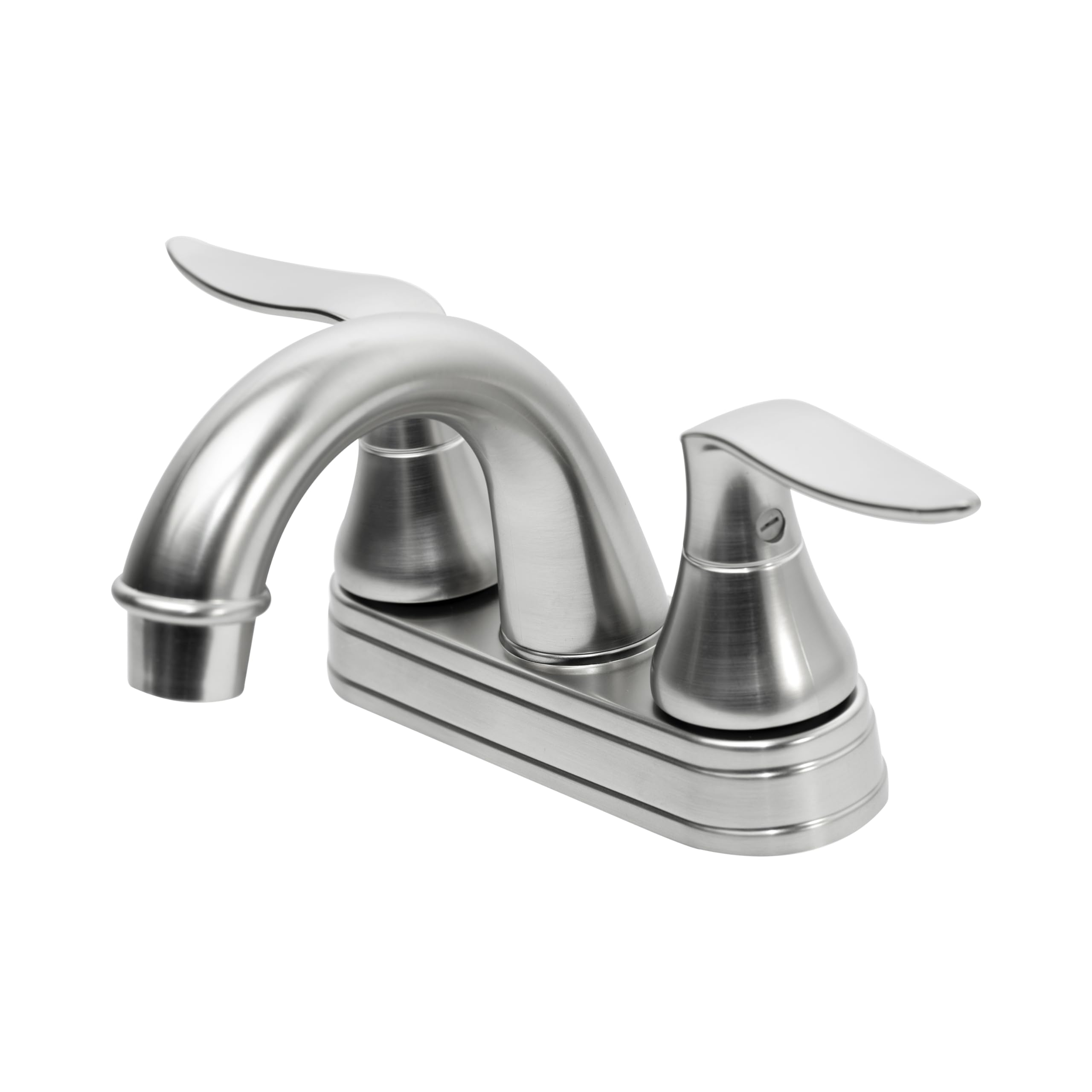 The Dura Faucet DF-PL620LH-SN is an elegant RV lavatory faucet designed specifically for the space constraints of recreational vehicles. This deck-mount faucet features a stylish arc spout design with dual lever handles that provide precise control over water temperature and pressure.