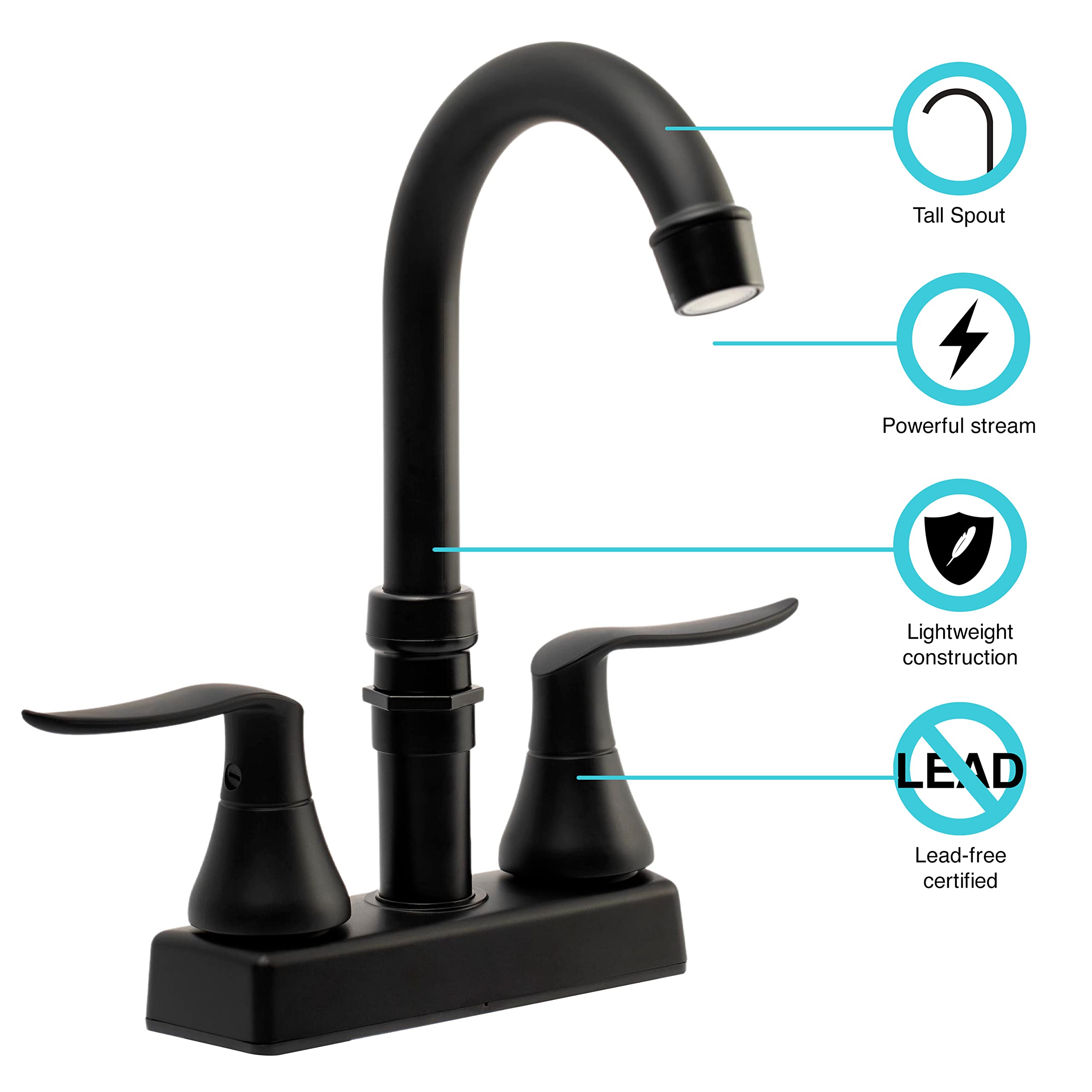 The Dura Faucet DF-SA180LHK-MB is a high-quality RV bar faucet designed specifically for recreational vehicles and mobile applications. This compact center-set faucet features a high-arc spout that provides ample clearance for washing large dishes and filling tall containers, while its elegant design complements any RV kitchen or wet bar décor.